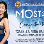 Ysabella Nina Dagondon (DLSZ 2022) has been selected as one of the TEN MUNTINLUPA OUTSTANDING STUDENTS (10MOST) for 2020. Ysabella Nina participated in various events of the search including an IQ Test, Panel Interview with 10MOST Steering Committee, Talent Showcase, community outreach and cityhood attendance. The awarding ceremony originally set on March 17, 2020 has...Read More