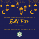 In observance of Eid’l Fitr, DLSZ offices will be closed on May 13, 2021. Regular office operations will resume on May 14. Please view Proclamation No. 1142: Source: @inquirerdotnetRead More